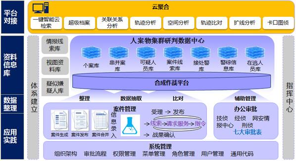 “警務(wù)合成作戰(zhàn)系統(tǒng)平臺(tái)”主要強(qiáng)調(diào)的是在統(tǒng)一的平臺(tái)下,實(shí)現(xiàn)情報(bào)信息主導(dǎo)警務(wù)工作的目標(biāo),變數(shù)據(jù)為情報(bào),發(fā)揮情報(bào)信息在“偵察破案、執(zhí)法辦案、防范控案、分析決策”方面的作用,實(shí)現(xiàn)對(duì)犯罪的“主動(dòng)防范、精確打擊。本平臺(tái)軟件主要針對(duì)公安機(jī)關(guān)的實(shí)際業(yè)務(wù)需求為主導(dǎo),嚴(yán)格遵循公安部門相關(guān)標(biāo)準(zhǔn)和規(guī)范進(jìn)行設(shè)計(jì)、實(shí)施。系統(tǒng)主要功能如下: